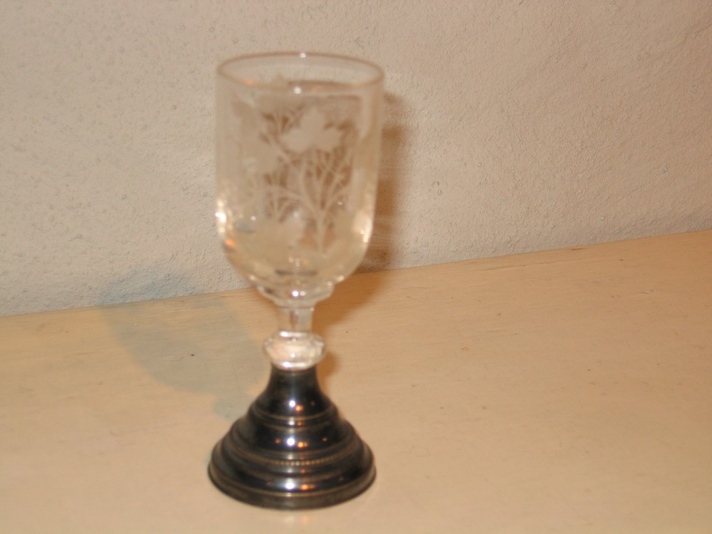 Borrelglaasje met geslepen bladmotief op zilveren vo...