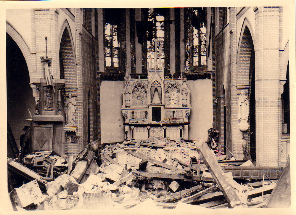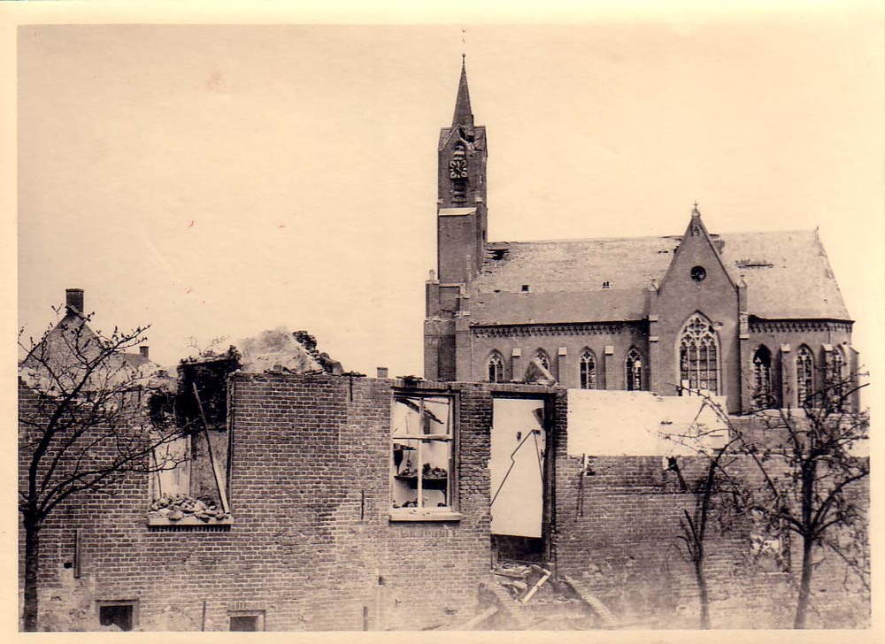 Verwoeste huizen en R.K.Kerk te Alem.