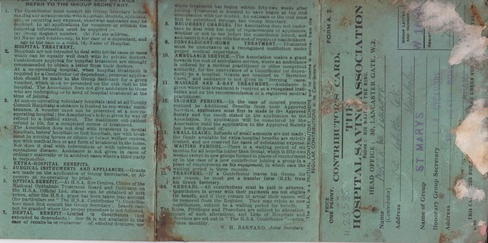 Contributor's Card Hospital Saving Association