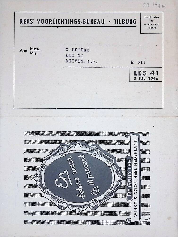 briefkaart van J. de Jong uit Bergeijk aan de famili...
