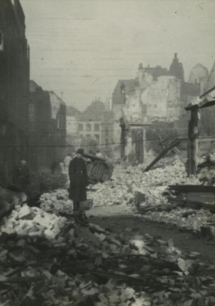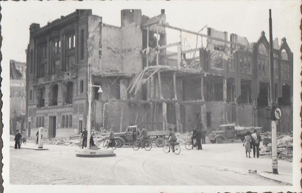 Foto van de Boompjes te Rotterdam met verwoeste bebo...