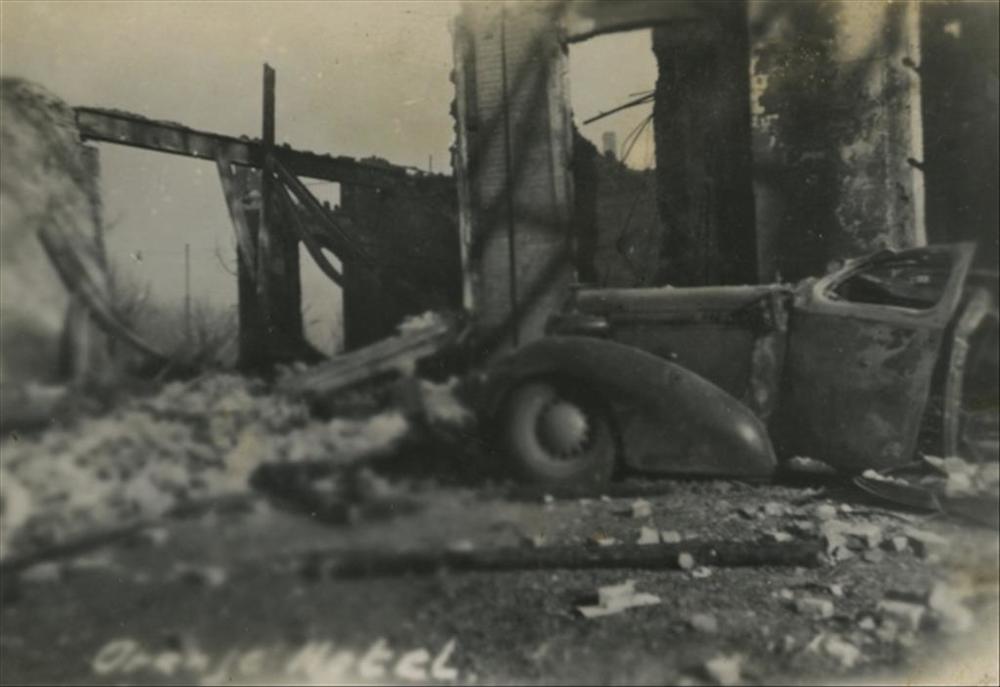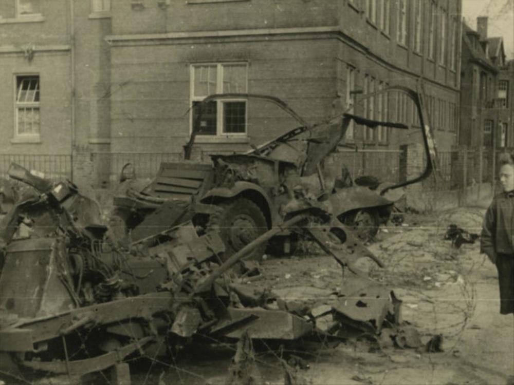 Nijmegen, 22 februari 1944; uitgebrande personenauto