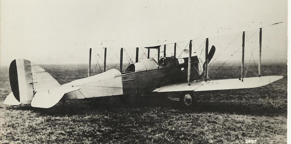 Foto van een vliegende Lockheed Hudson. Tekst achter...