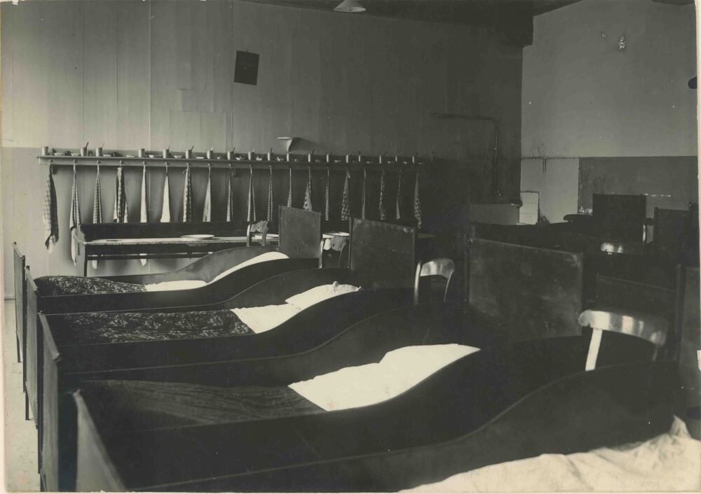 Foto, voorstellende slaapzaal van het Elisabeth Wees...
