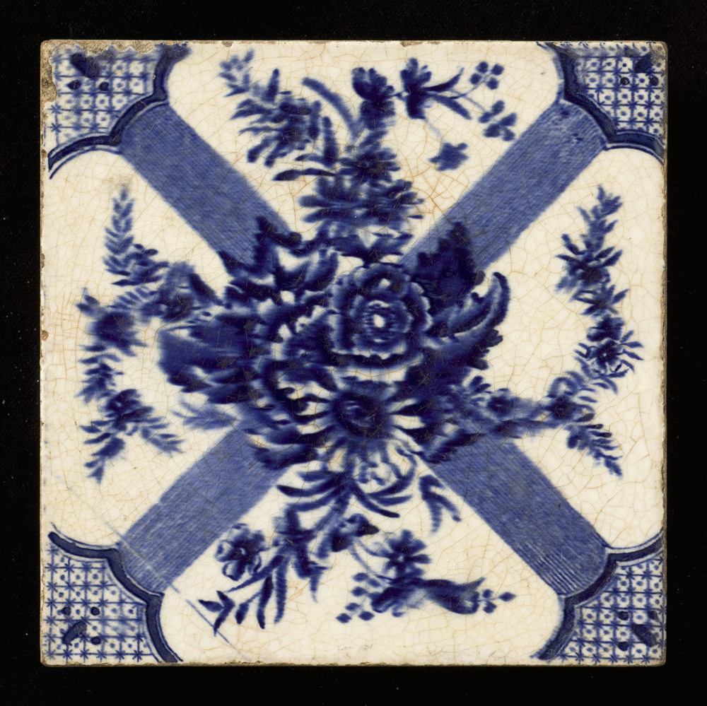 Tegel in transfer-techniek, met voorstelling: Orname...