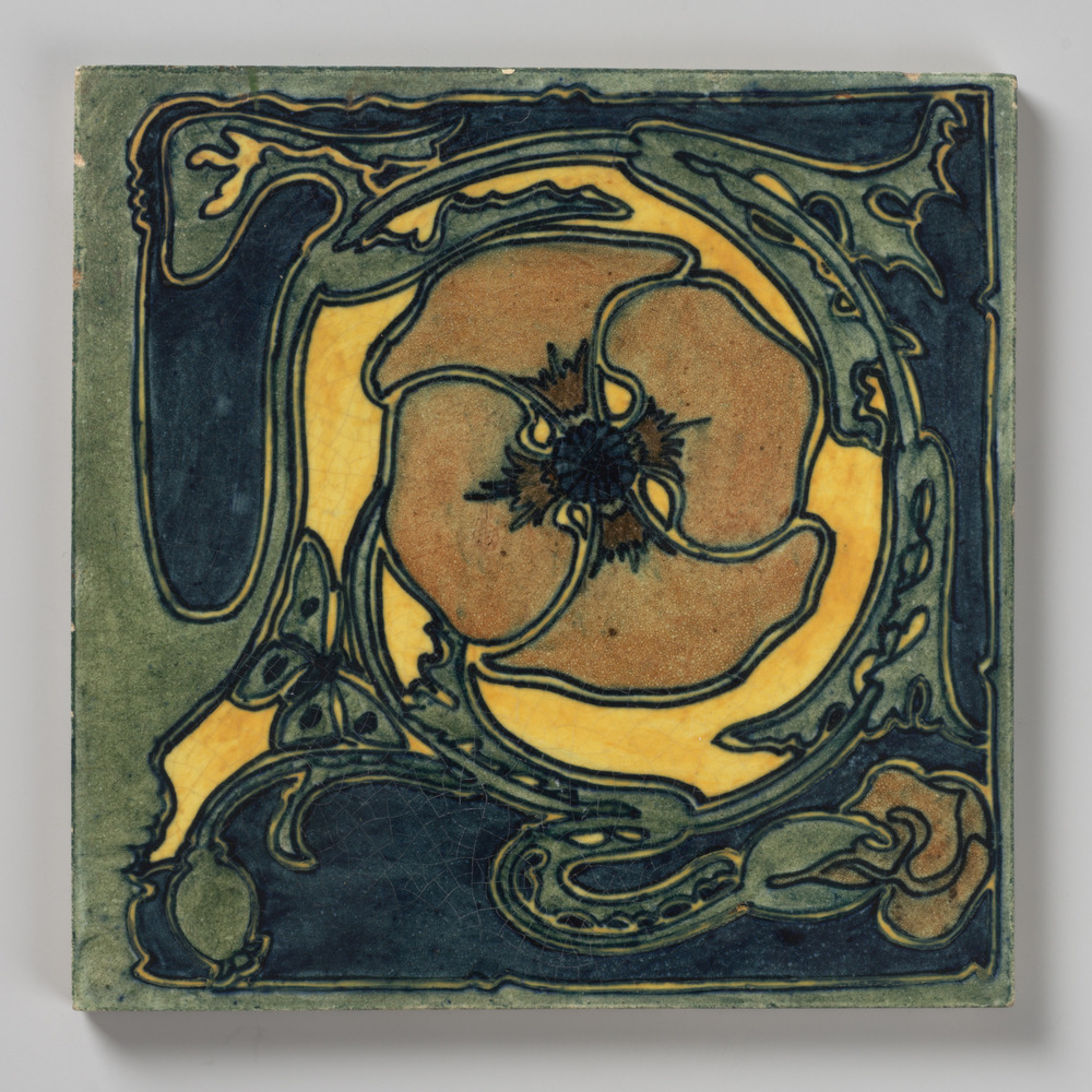tegel van aardewerk in chanoir-techniek, voorstellen...
