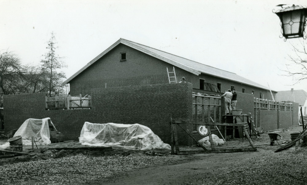 Zwart-wit foto van het dorpshuis in Aerdt op 19 febr...