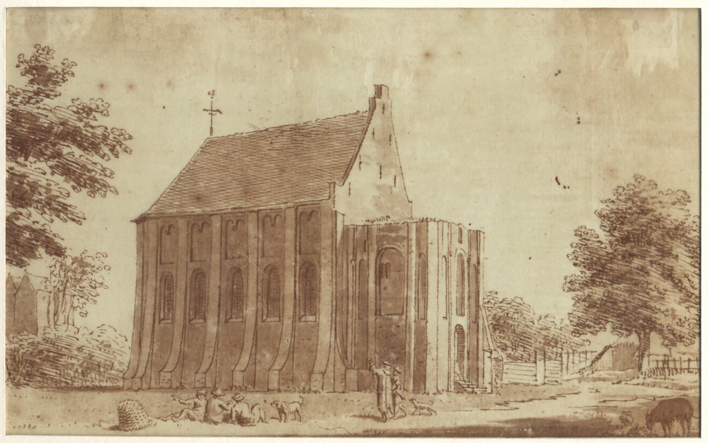 Gezicht op de kerk te Zuilichem met gedeeltelijk afg...