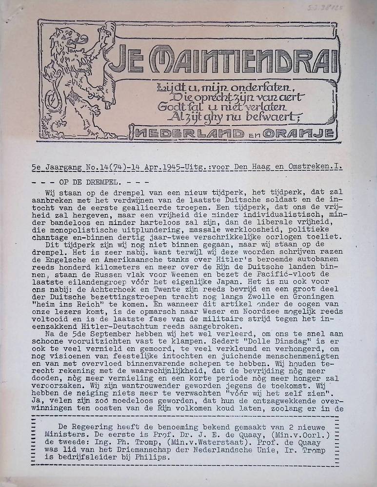 Je Maintiendrai, april 1945