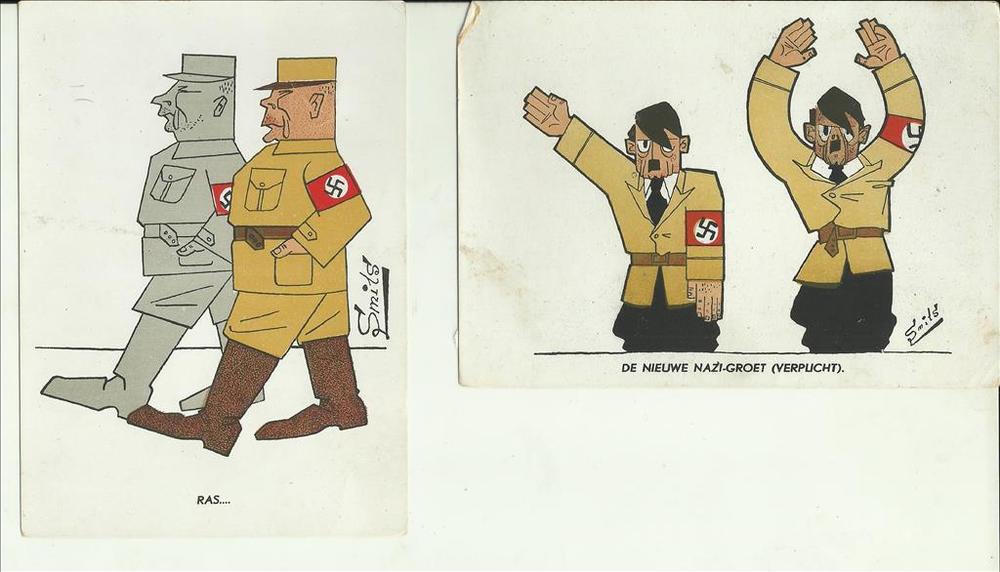 Ansichtkaart, cartoons, De nieuwe nazi-groet ( verpl...