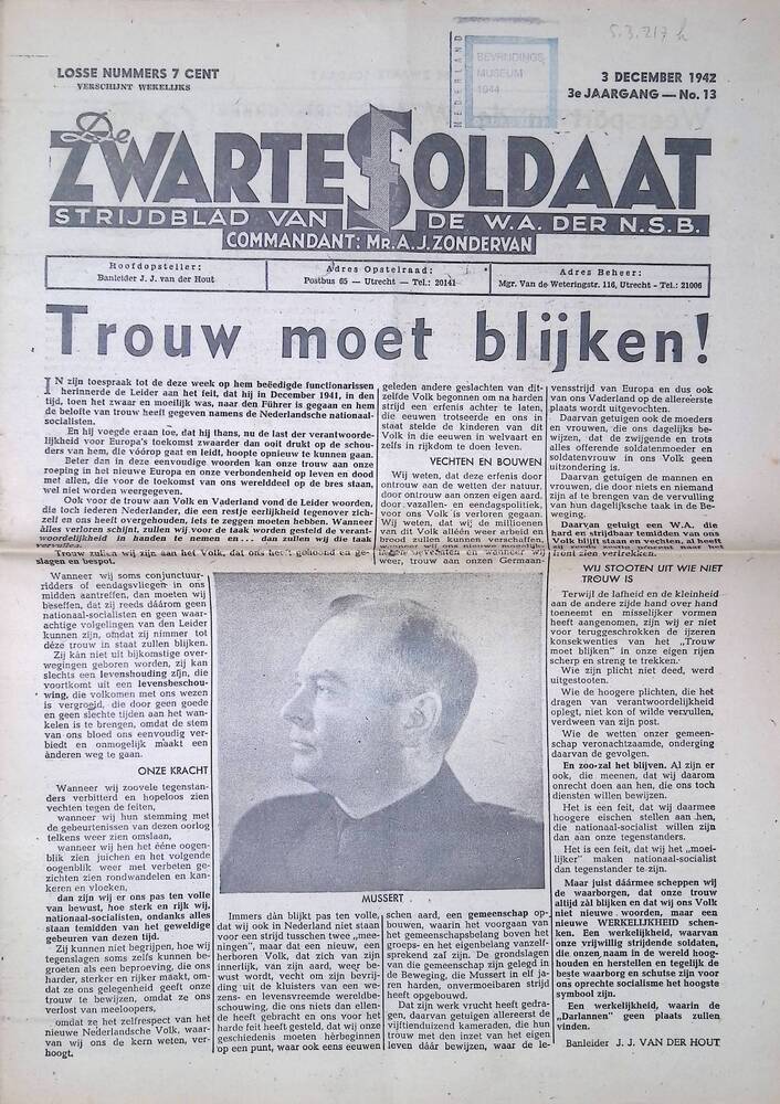 De Zwarte Soldaat, weekblad van NSB weerafdeling, ja...