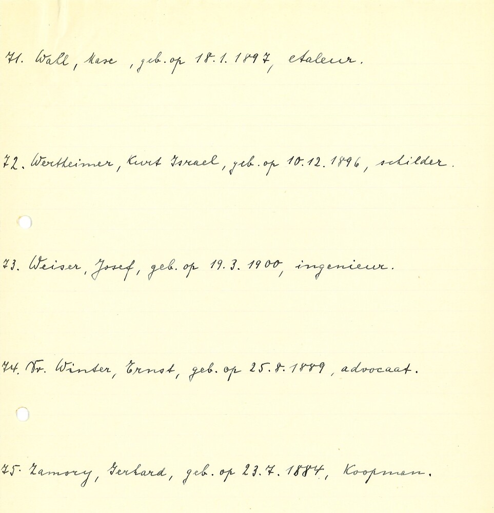 Namenlijst van vermoedelijke Joodse vluchtelingen