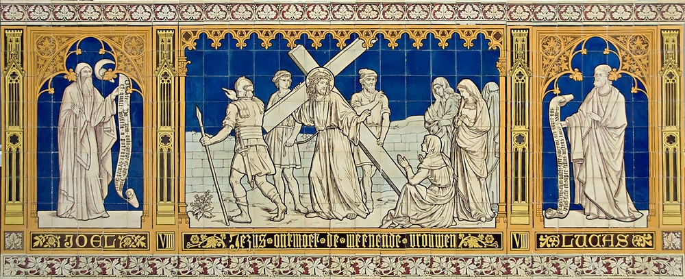 Tegeltableau, voorstellende de 8e statie van een kru...