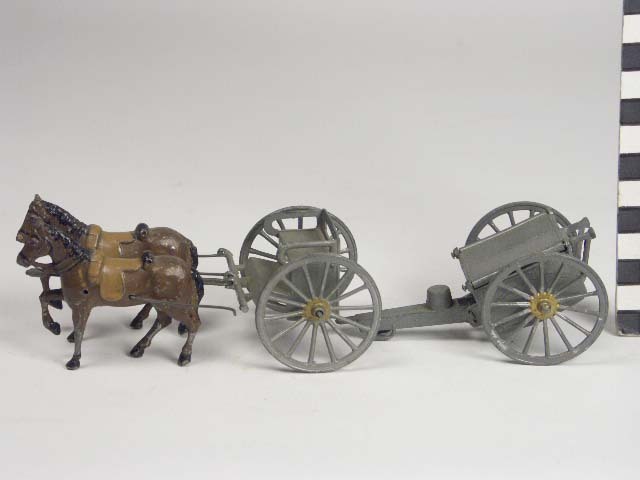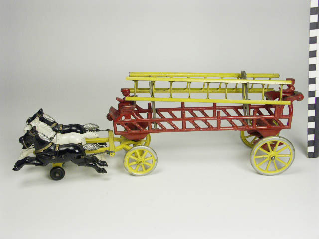 Brandweerwagen met twee paarden en mannetje(s)
