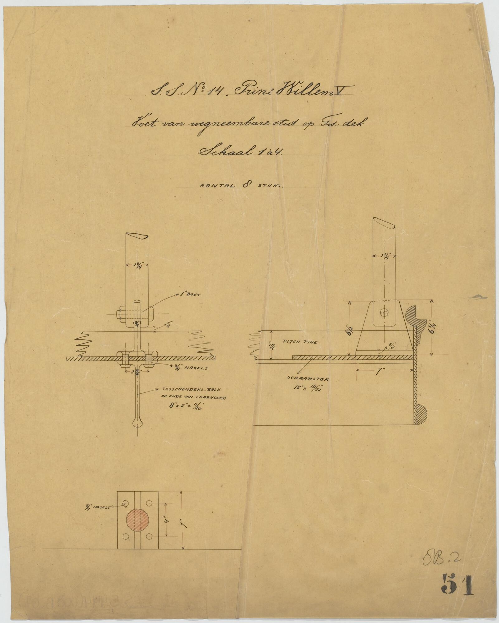 Schets van de bouten in de koppen der davits van de ...