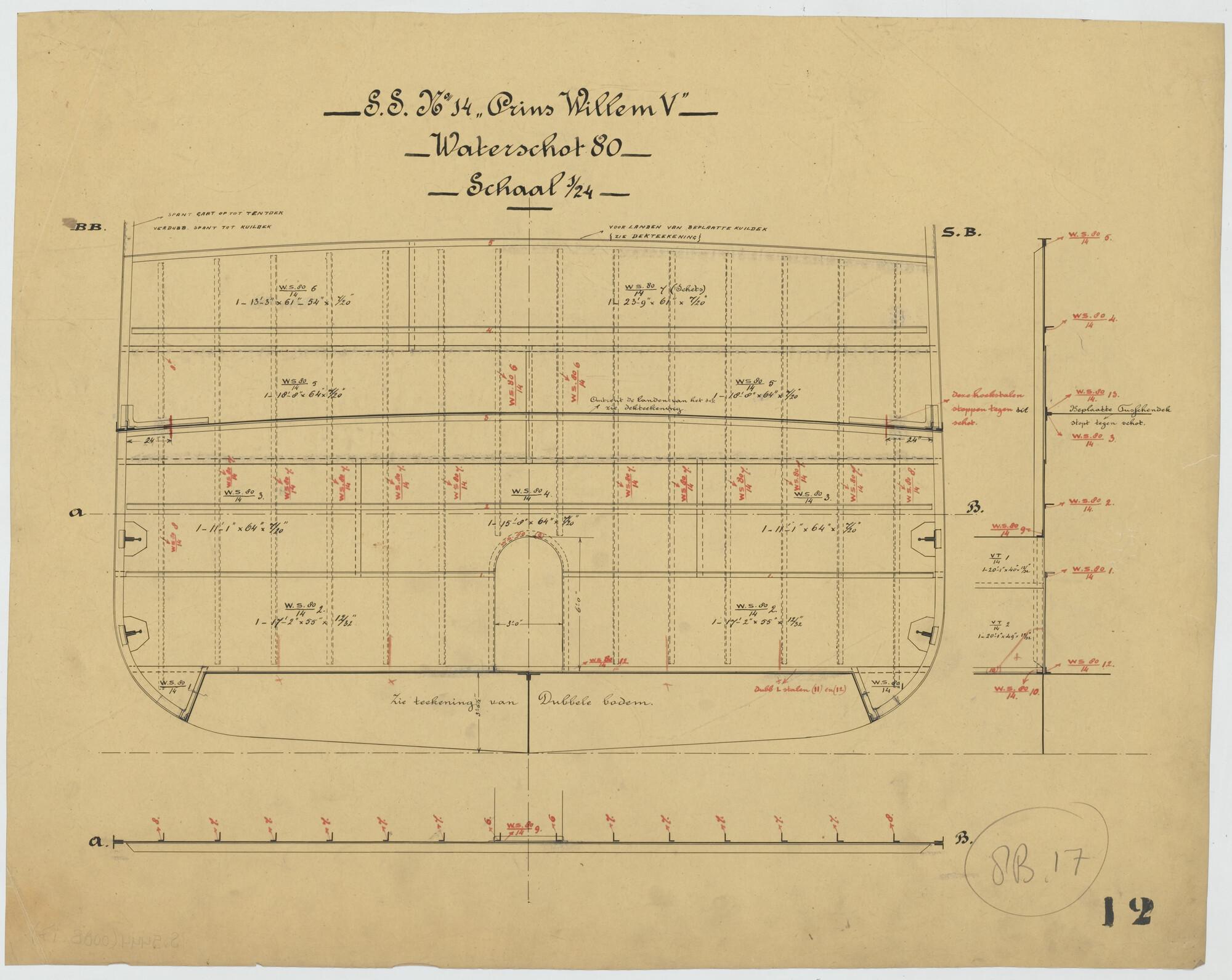 Spantenlijst van het voorschip van het passagierssch...