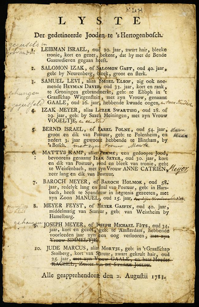 Lyste Der gedetineerde Jooden te 's Hertogenbosch