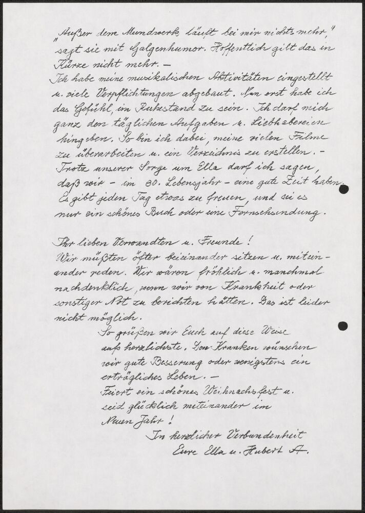 Brief van Ella en Hubert aan familieleden en vriende...