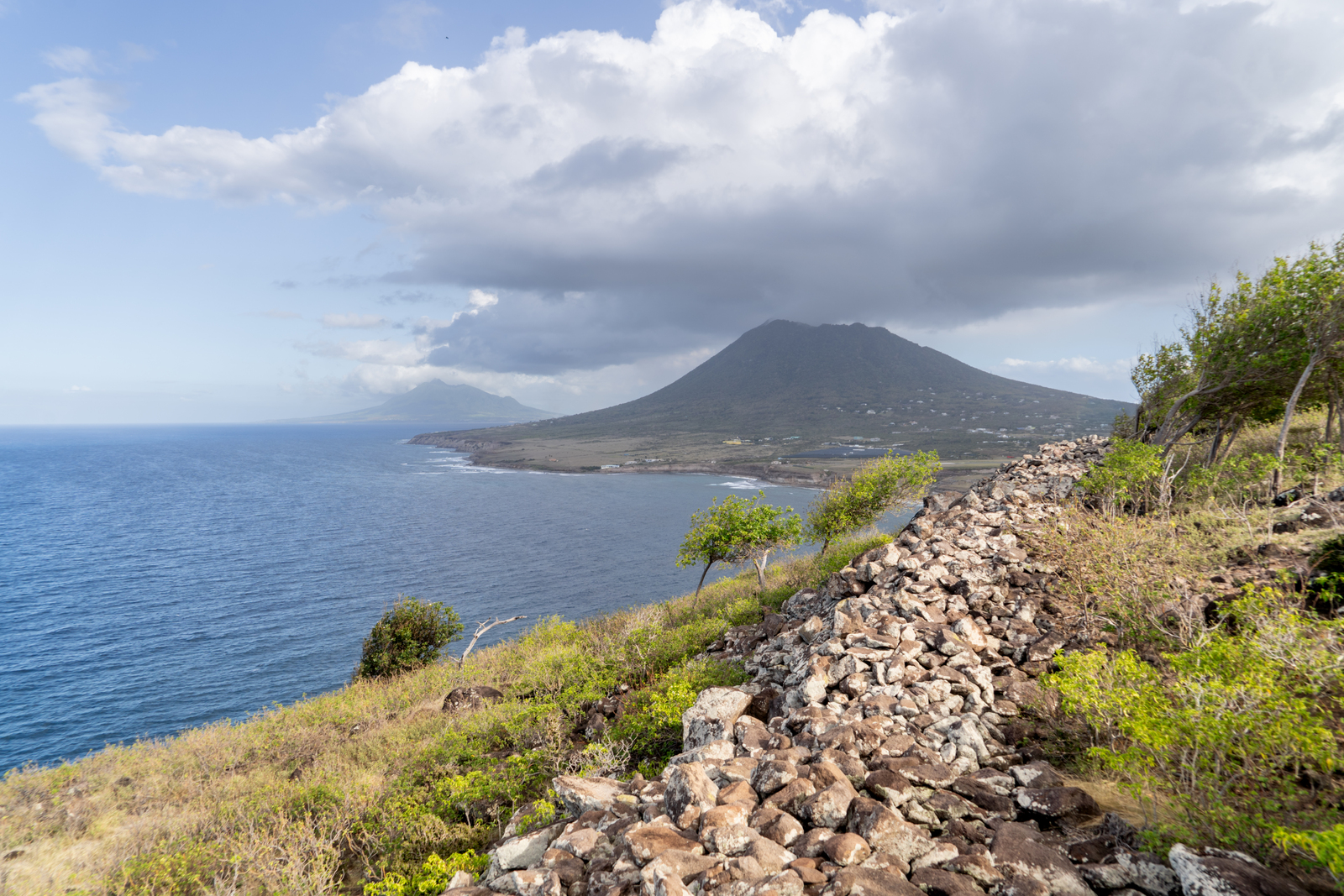 Een slavenmuur in Boven Nationaal Park met op de ach...