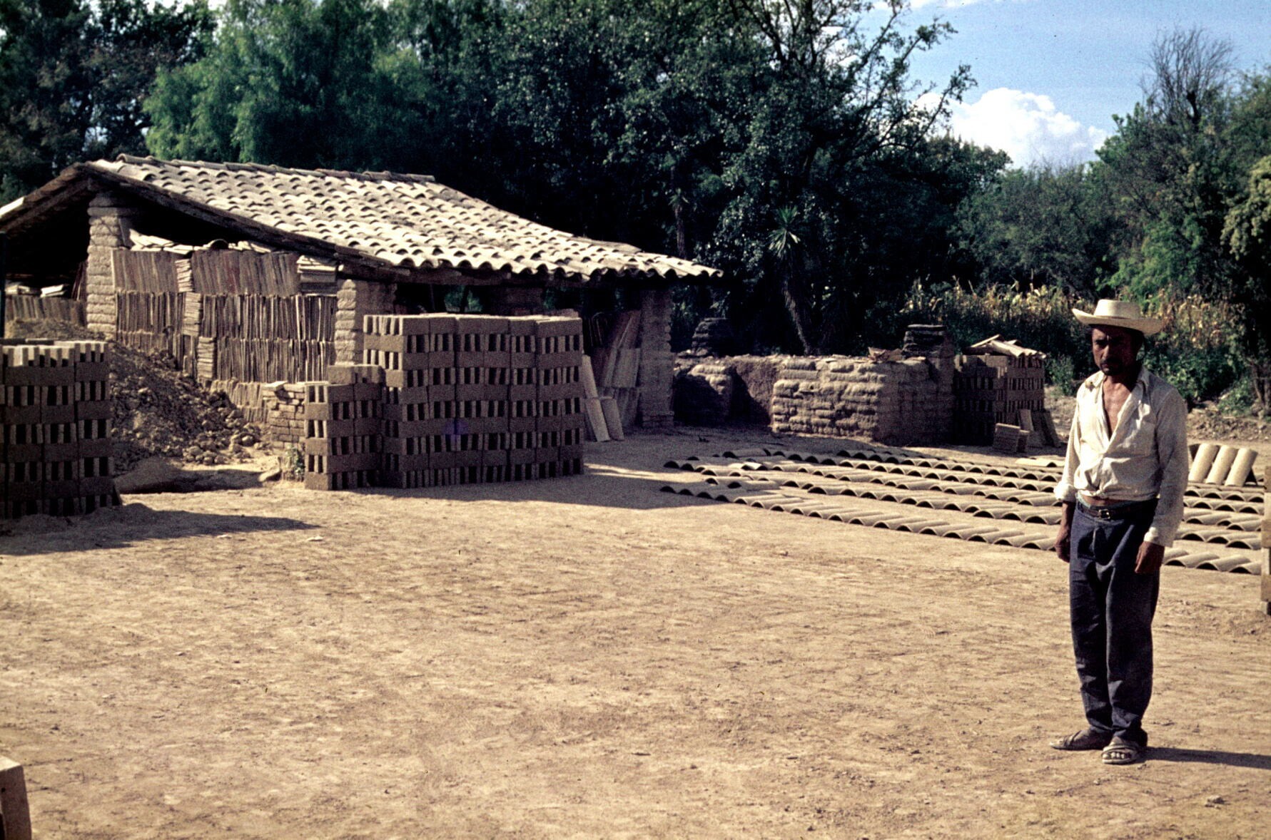 fabricage van adobe stenen in buurt van Ajalpan