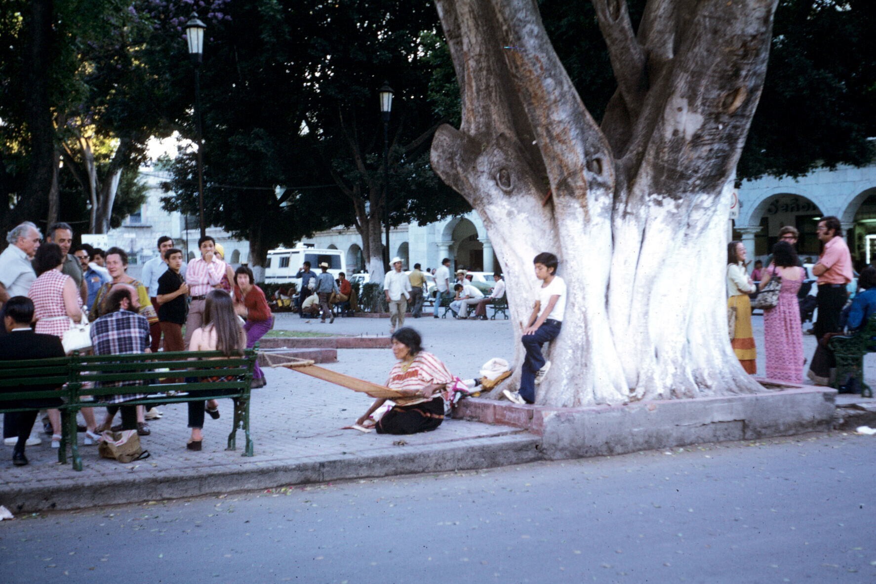 Mixteekse vrouw met heupweefgetouw op Zócalo (centra...
