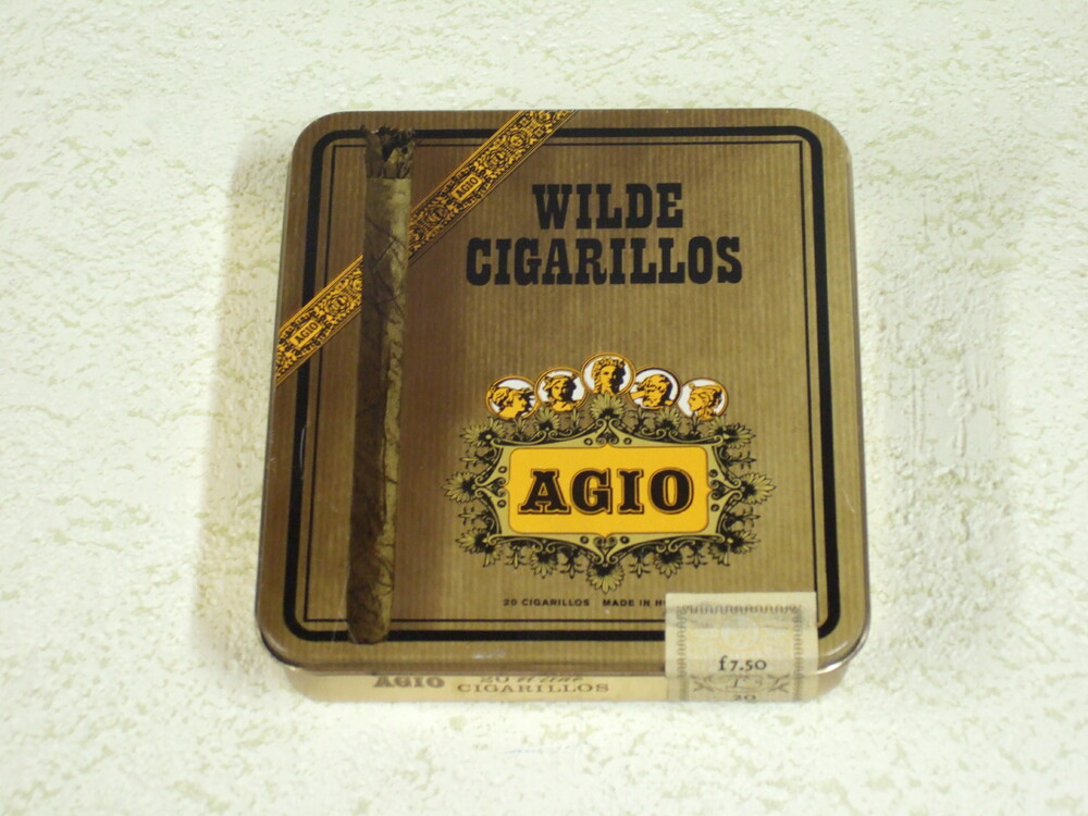 Sigarenblik met opdruk van het merk Agio.