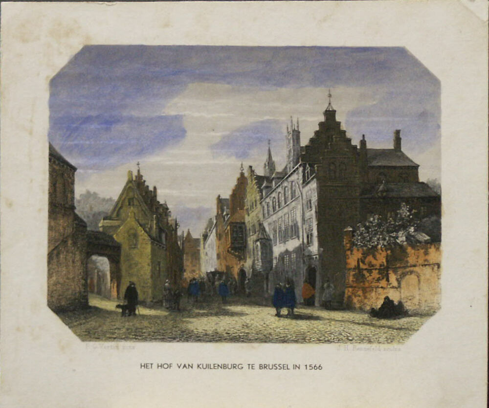 Gravure voorstellende 'Het hof van Kuilenburg te Bru...