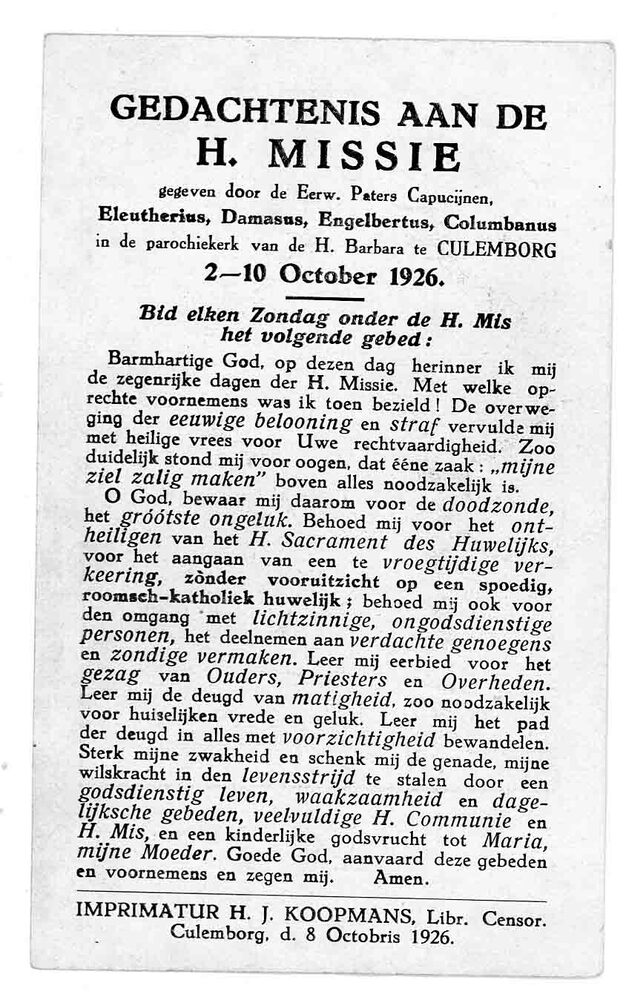 gedachtenisprent geassocieerd met de H. Missie, in d...