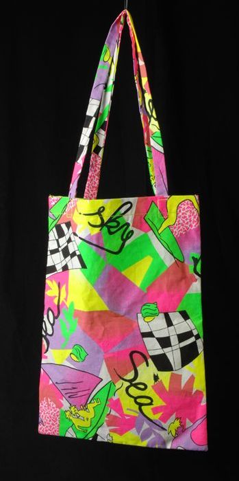 Fluoriserend groene stoffen tas met symbolen voor "I...