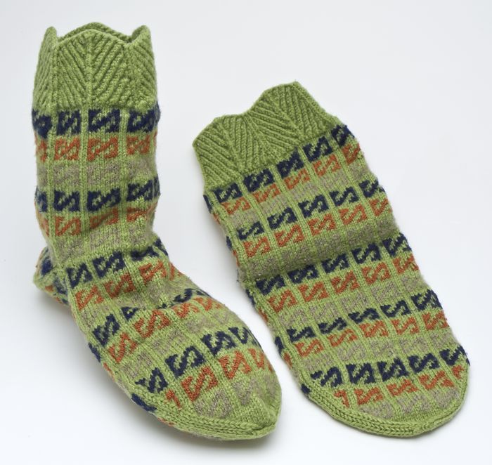 Paar groene gebreide huissloffen