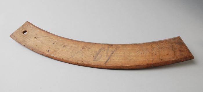 Mal uit wagenmakerij voor wagenwiel, gemerkt