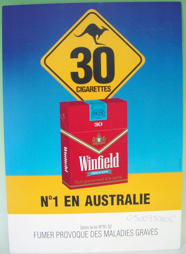 Reclamebord van karton voor het merk Winfield. Circa...