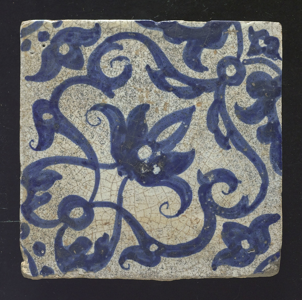 tegel van keramiek met tinglazuur, voorstellende: vo...