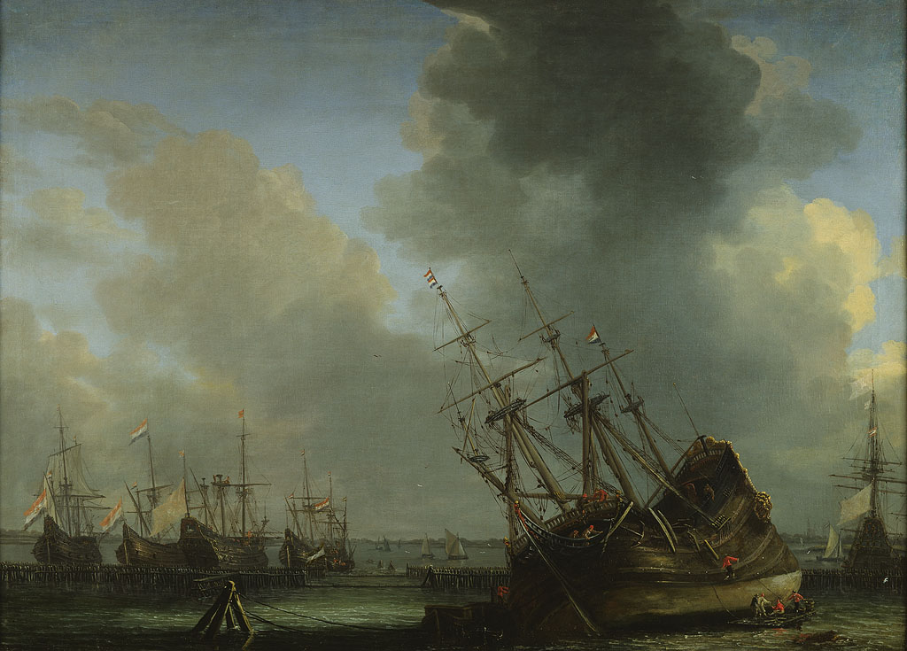 Een vloot van de Verenigde Oostindische Compagnie vo...