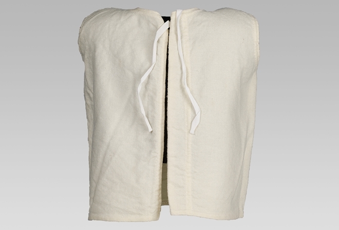 Borstrok genaaid van wit katoenen tricot, met knoops...