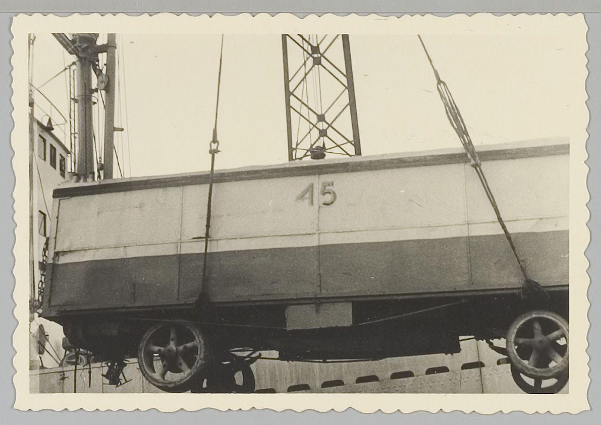 Maschinewagen in der Luft. Verlading te Marseille (v...