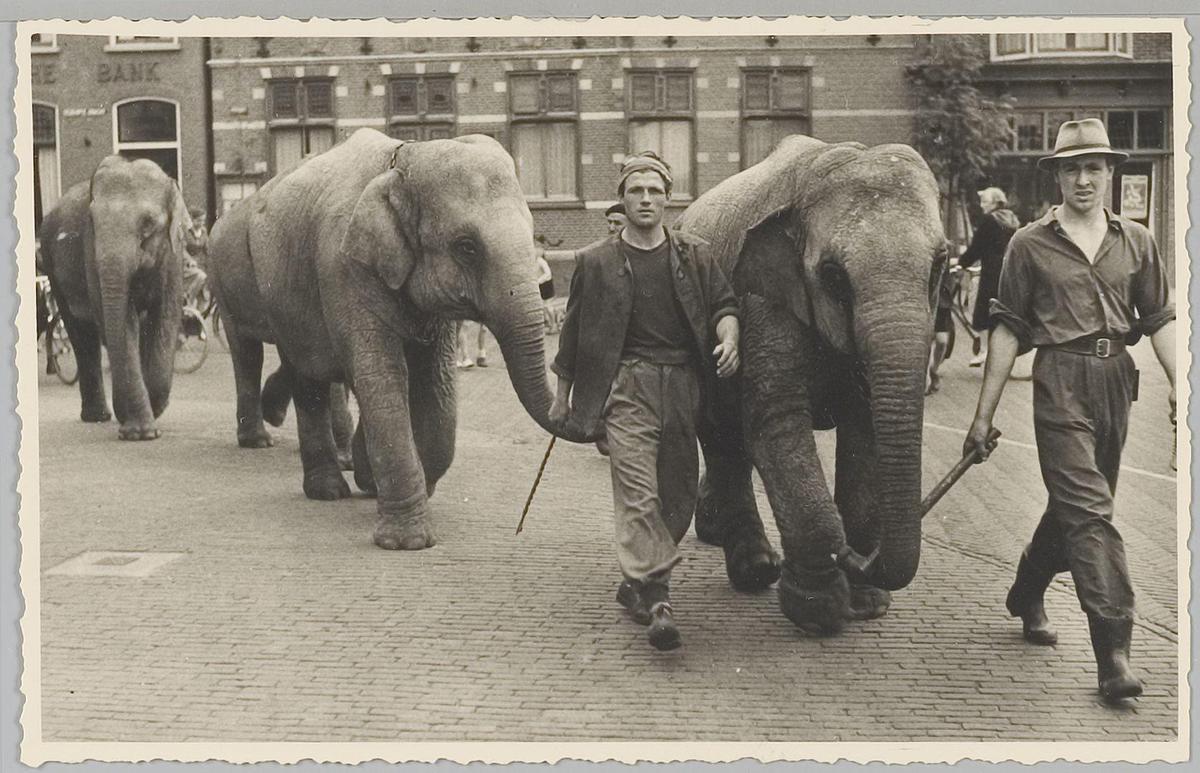 Circus Strassburger, ontlading Exoten. Station Duins...