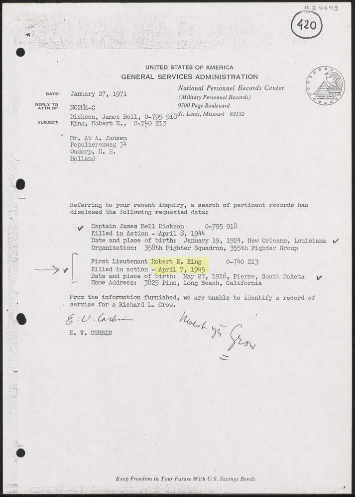 Documentatiemap Robert Floyd Nimmo, neergestort op 3...