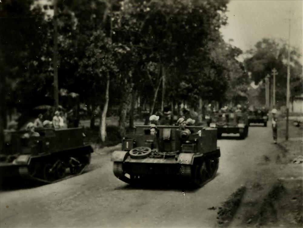 Indië na WO 2: militair, parade, rupsvoertuig, carrier