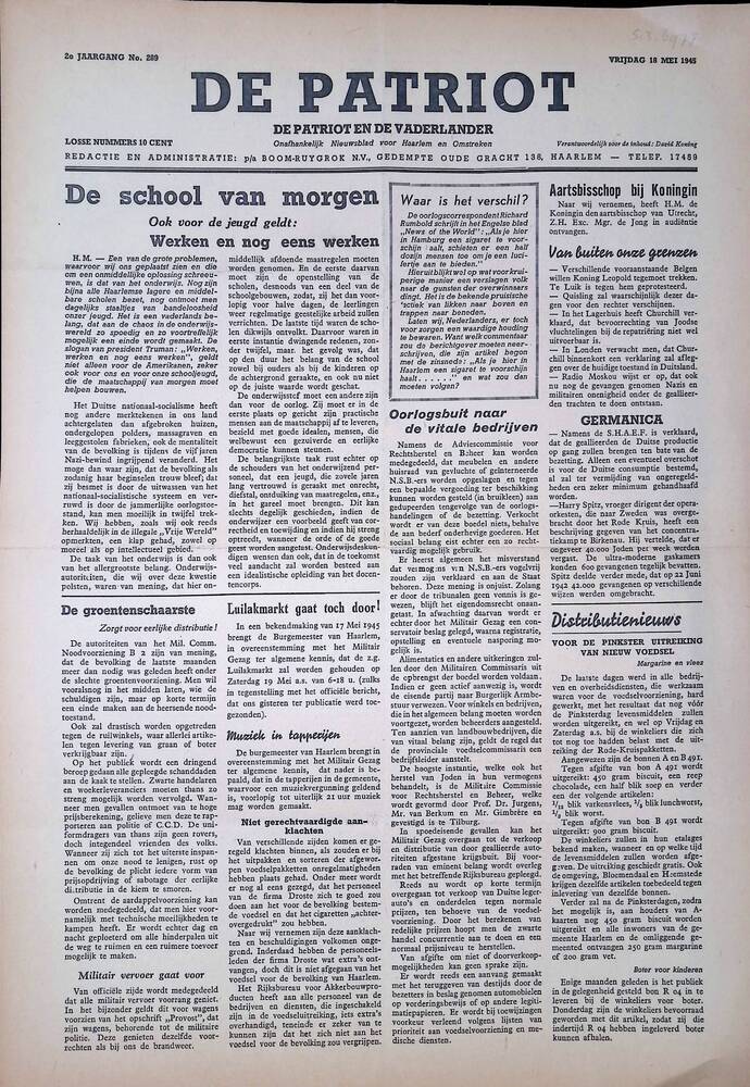 De Patriot, 2e jaargang no 289, 18 mei 1945