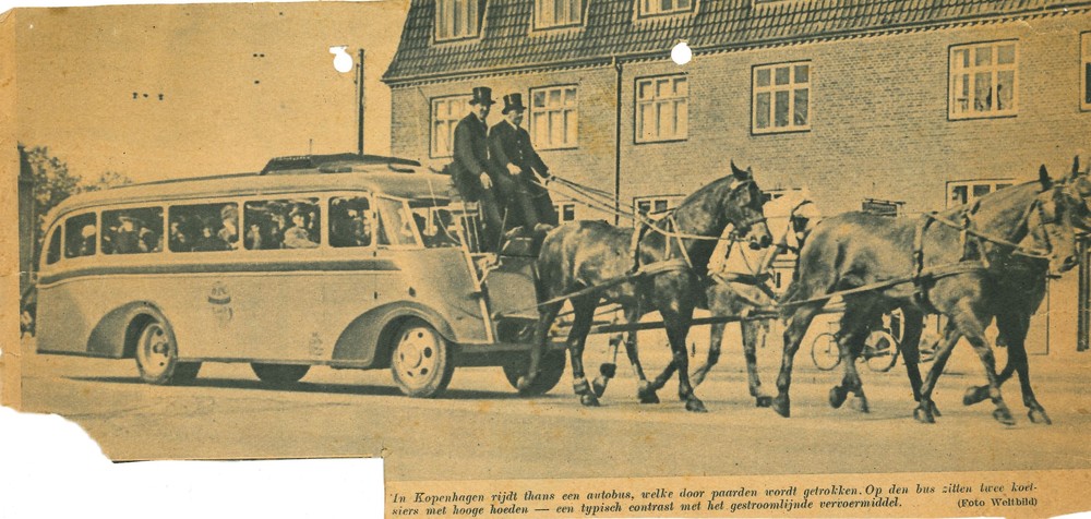 In Kopenhagen rijdt thans een autobus, welke door pa...