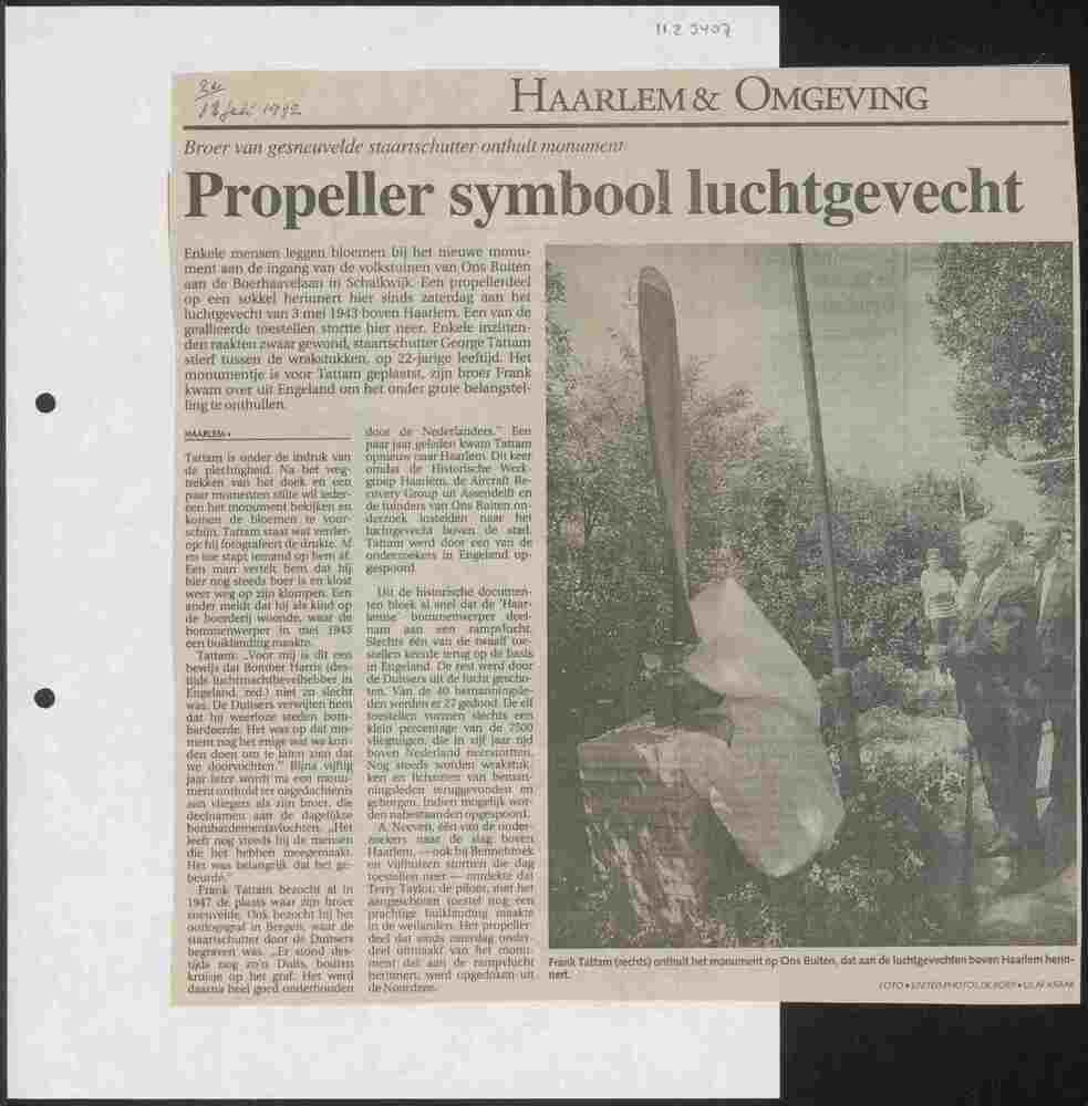 Artikel oprichting monument in Haarlem 13 juli 1992.