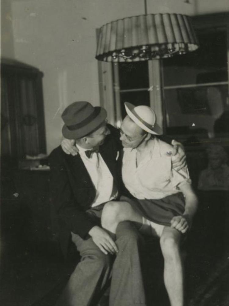 Foto van twee mannen ( rechts Norman v Hoeg) en een ...