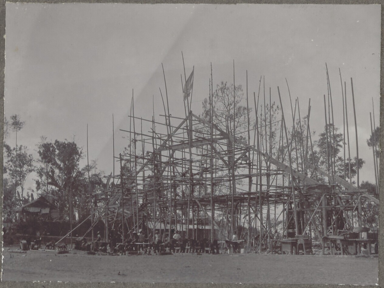 De Javaanse arbeiders verrichten het metselwerk voor...