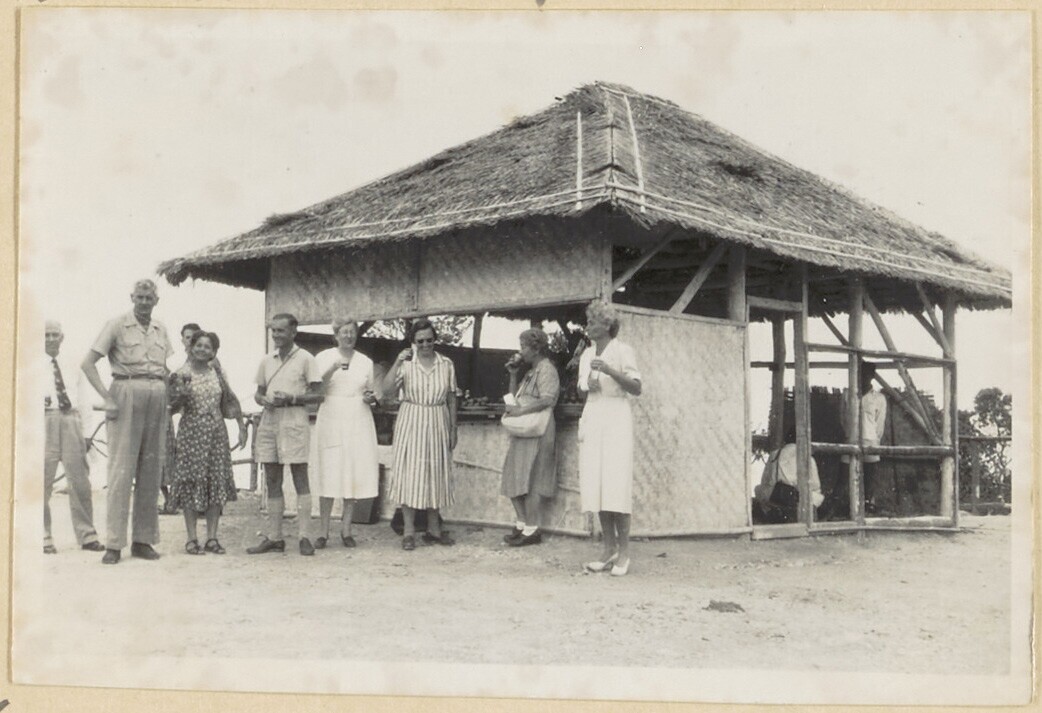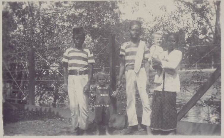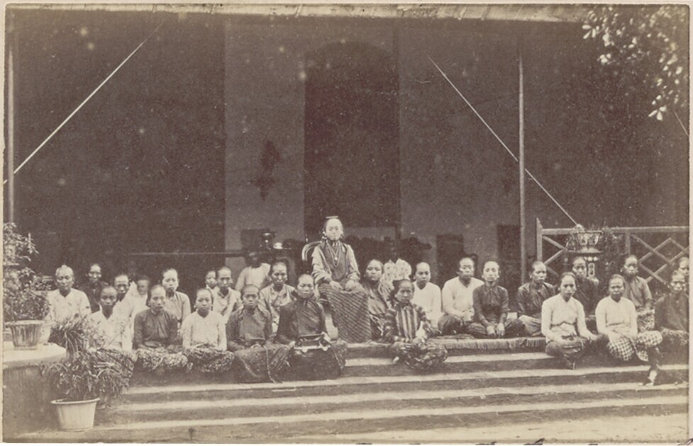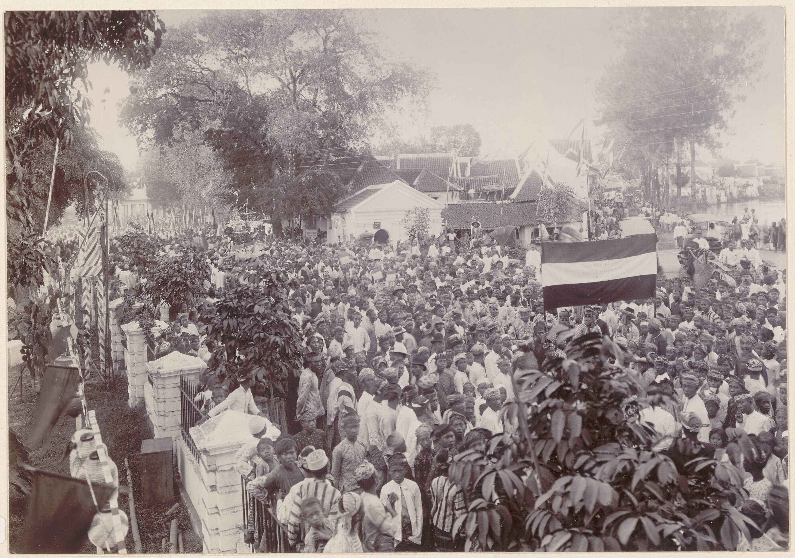 Enkele Javaanse mannen en een vrouw letten op de Ned...