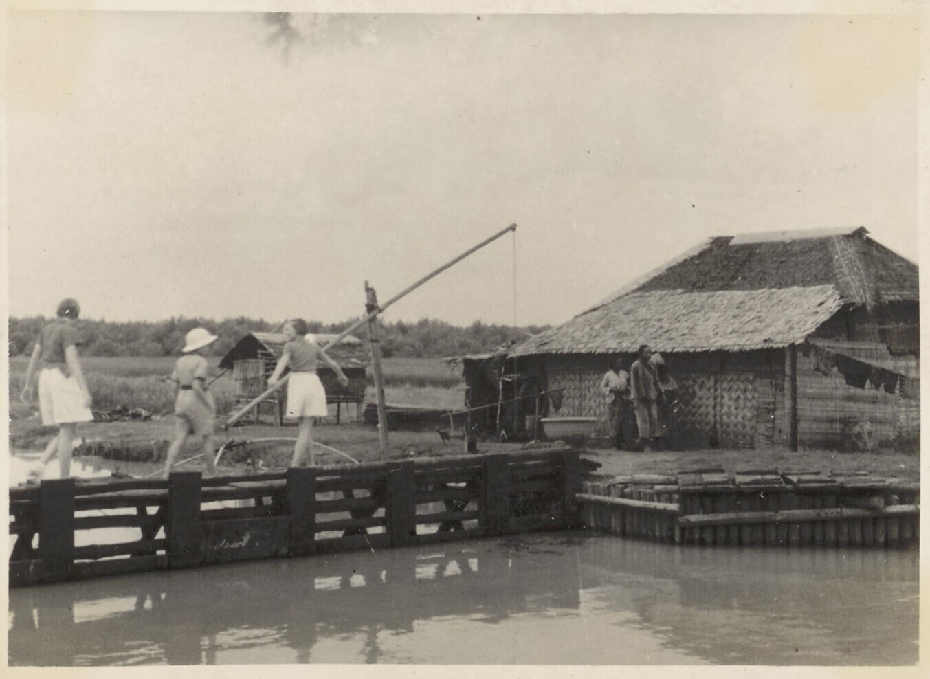 Loopbrug over de rivier de Tjimanoek. Bij de woning ...
