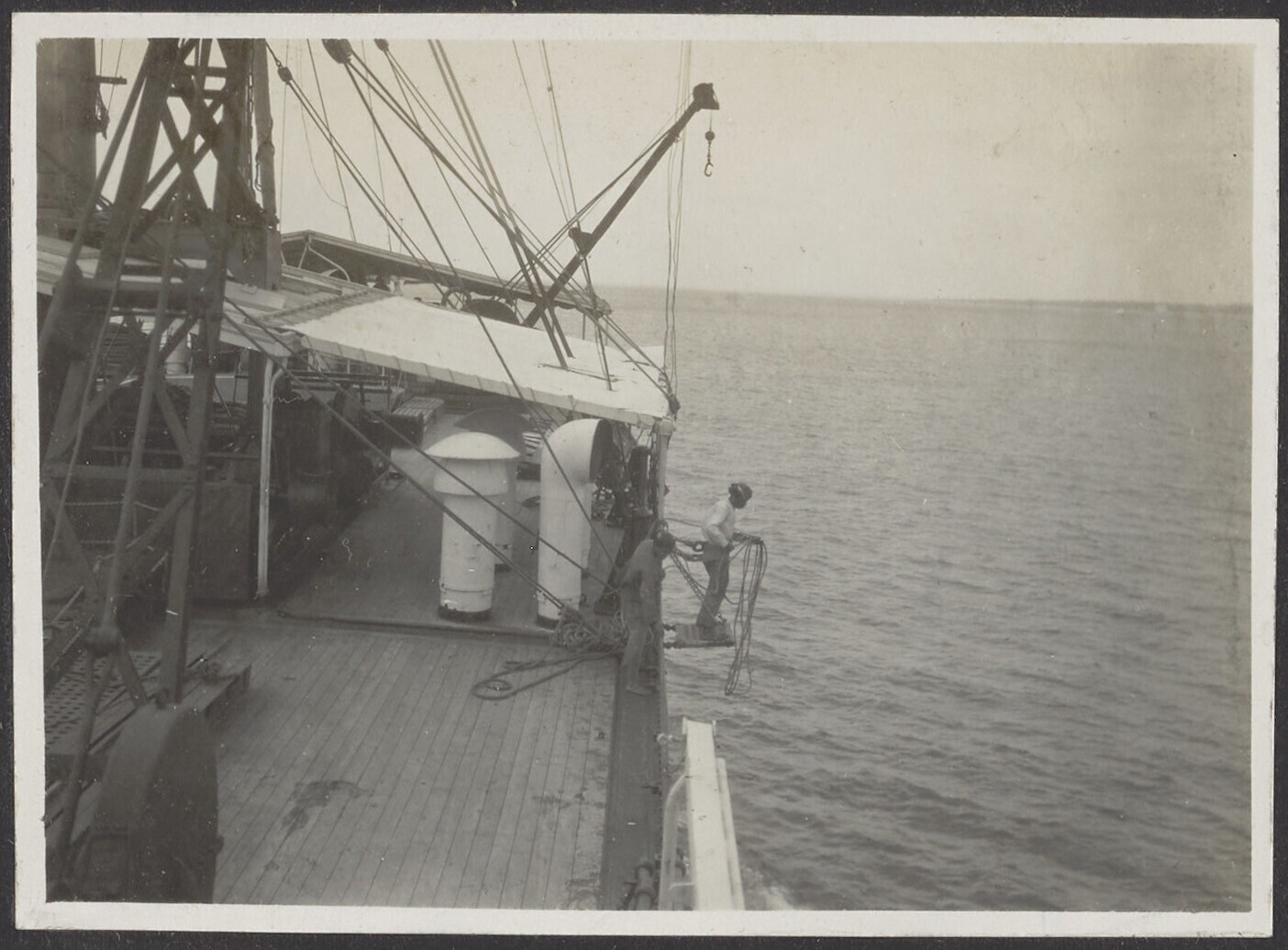 Javaanse matrozen staan op het dek van de ss. Saarbr...