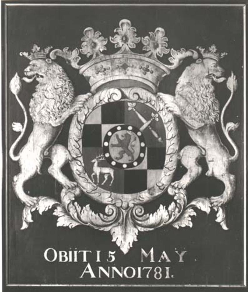 wapenbord met familiewapen en wapenkwartieren van Ha...