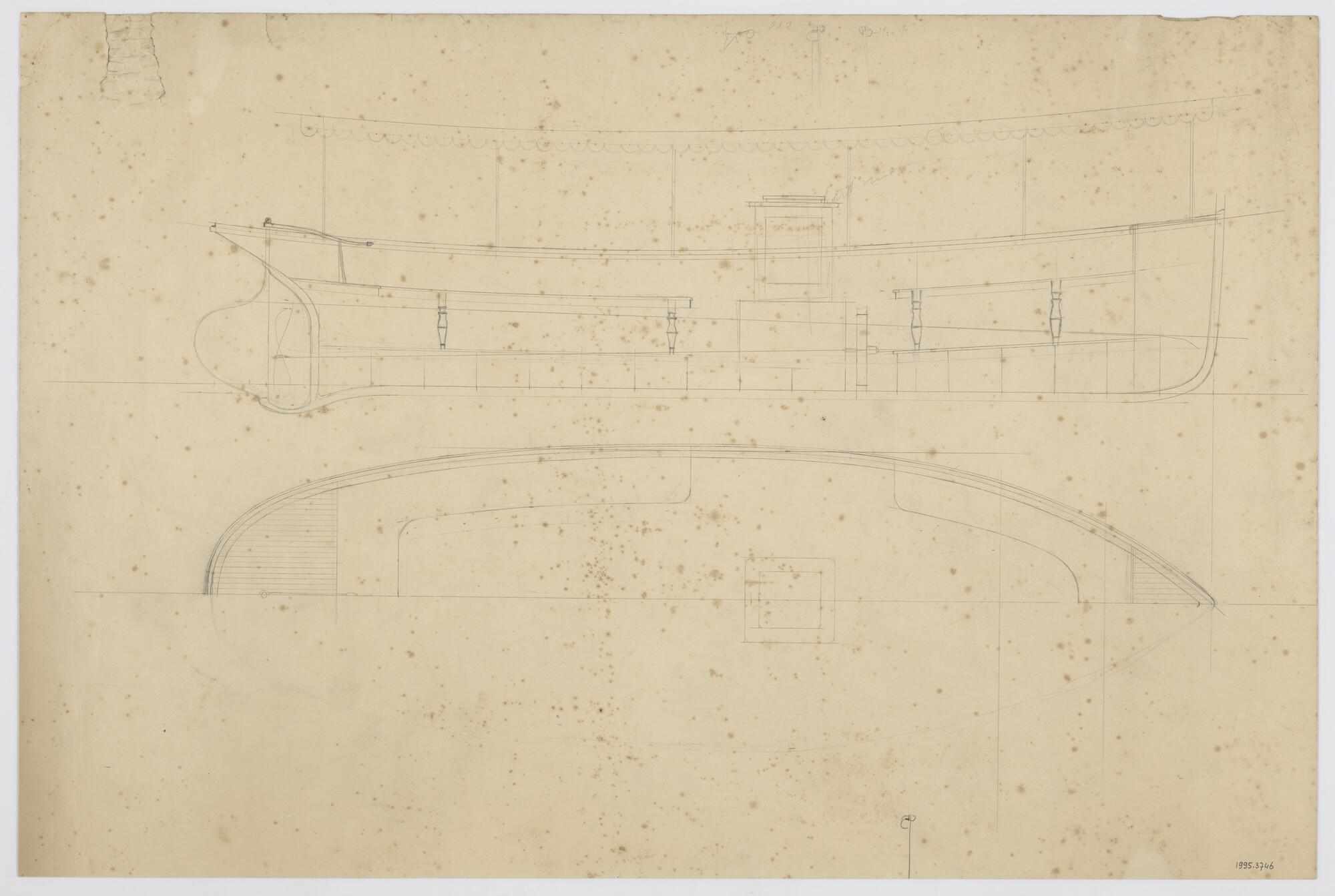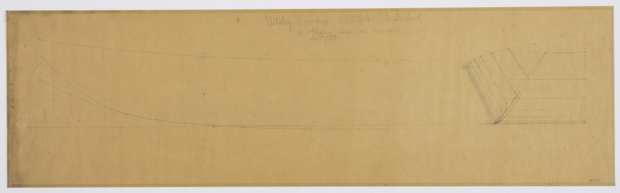 Contour voor- en achtersteven, roer en deklijn achte...