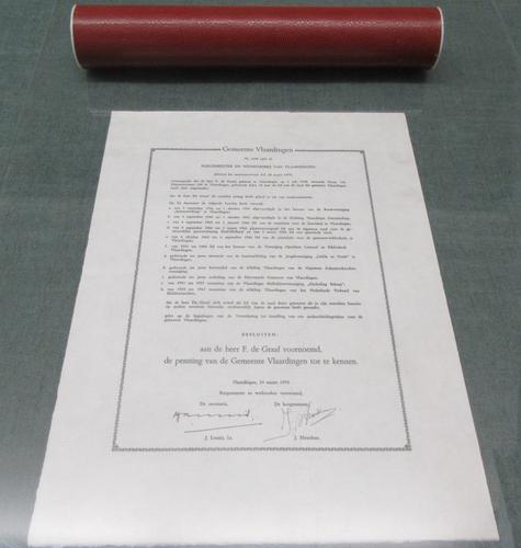 Oorkonde in koker F. de Graaf ,Vlaardingen